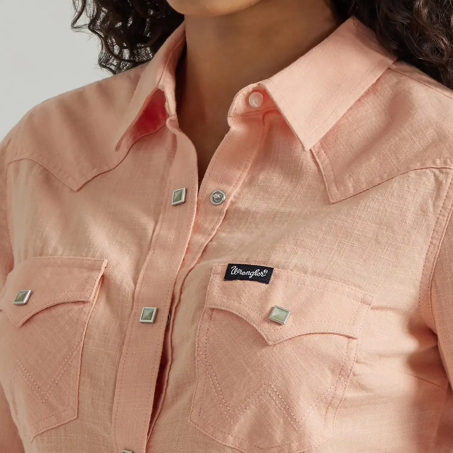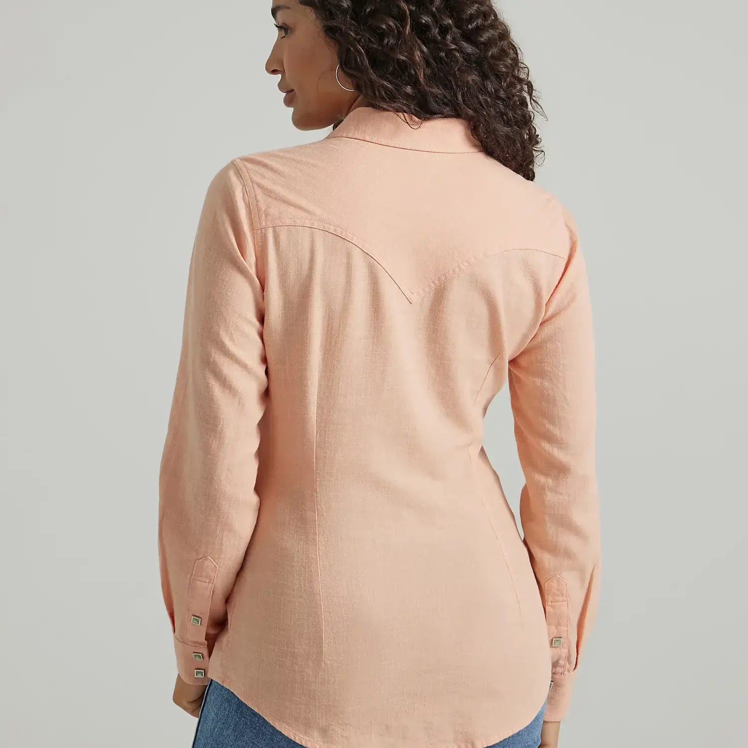 WOMEN'S RETRO® LONG SLEEVE SOLID WESTERN SNAP SHIRT IN PEACH